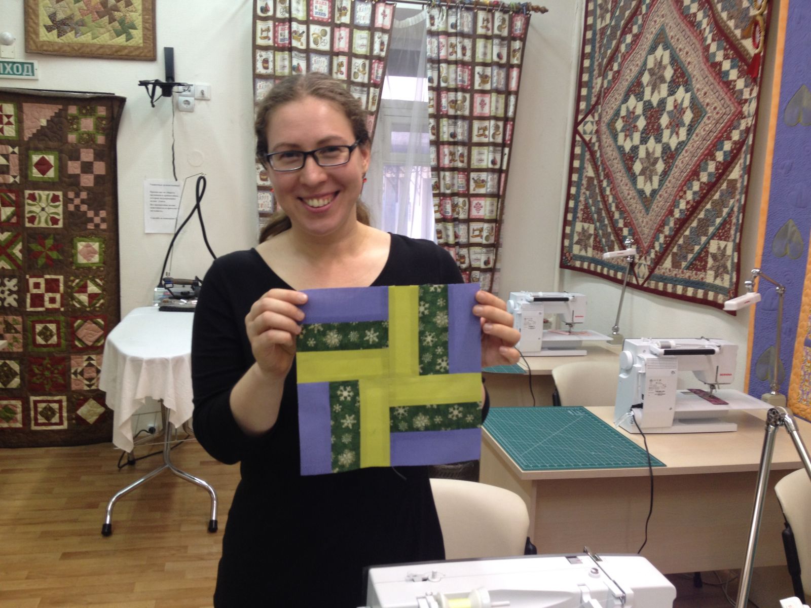 Наша гостья сшила свой первый блок и решила, что очень хочет продолжить это прекрасное занятие.