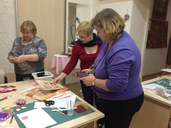На очередном клубном заседании лоскутницы ознакомились с быстрым способом английского шитья по шаблонам.