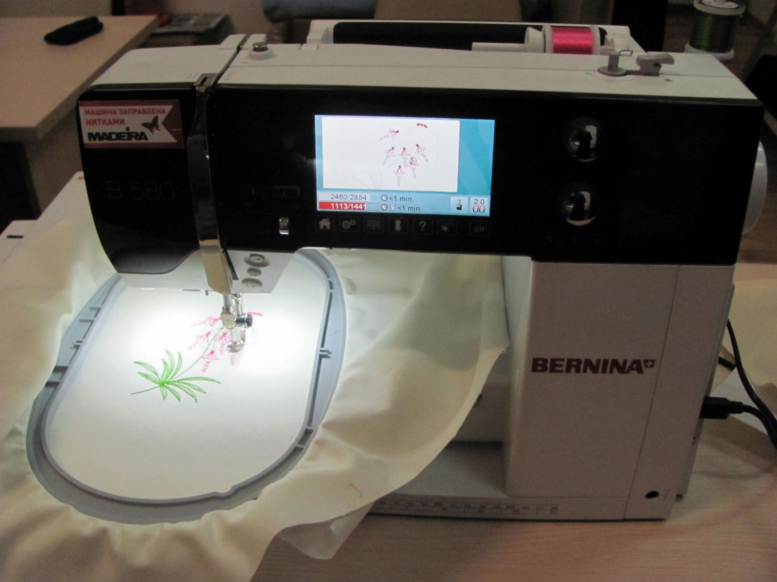Последней темой встречи было изготовление поделки (салфетки), посвященной празднику "8 марта". На салфетке вышивался дизайн с помощью швейно-вышивальной машины Bernina 580. Дизайн включал в себя не только вышивку, но и рисование специальными фломастерами для текстиля, которое возможно с применением нового программного обеспечения Paint Work - новый продукт Bernina, появится в этом году в продаже в магазинах "Мир шитья".