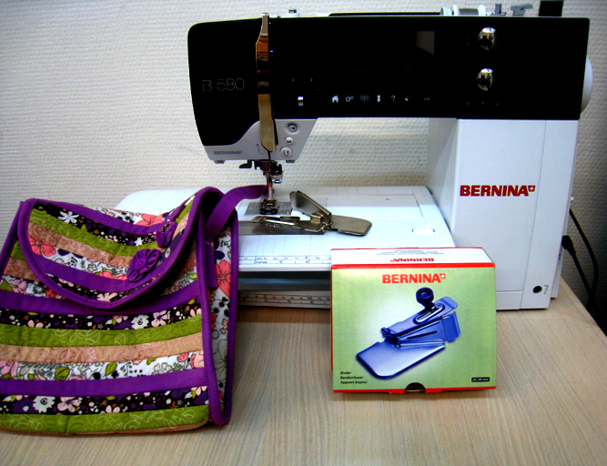 1. Практическое применение устройства для косой бейки - обтачки (Bernina).