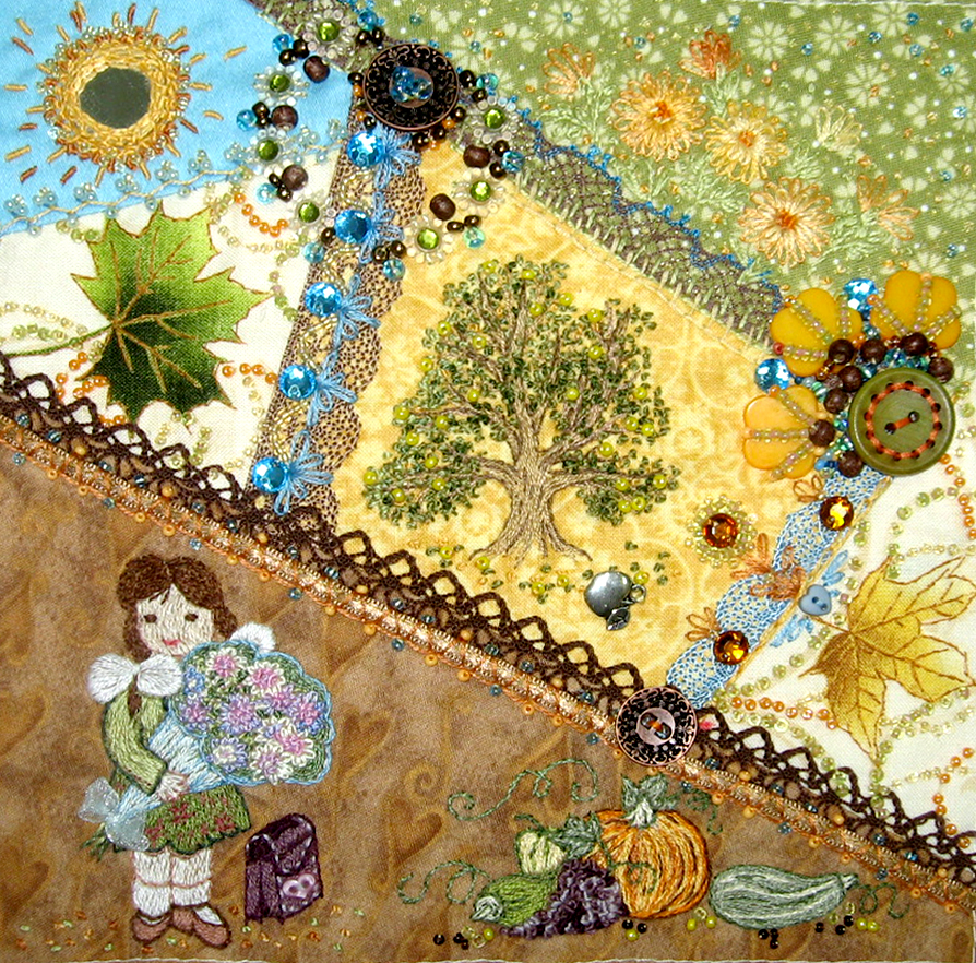 Знакомимся с материалами. Выбираем схему для квилта. Подбираем ткани. На этом этапе, если необходимо, выполняется вышивка. Собираем (сшиваем) основу.