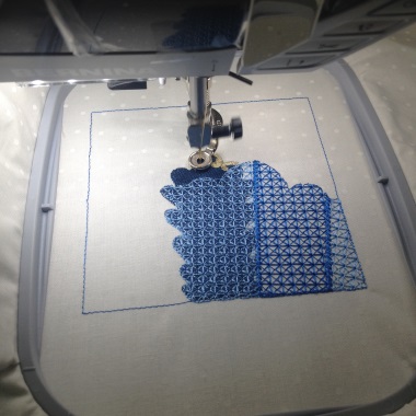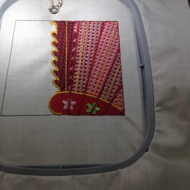 На втором курсе технологии машинной вышивки продолжаем вышивать блоки: бордюр закончили, приступили к внутренней части.