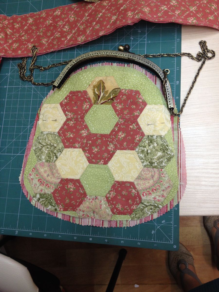 До очередной встречи было дано задание собрать детали для фермуара в технике английского пэчворка.