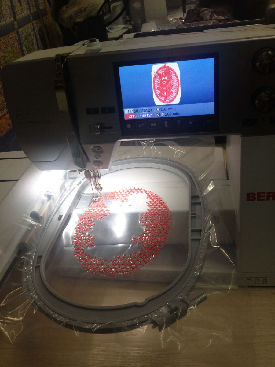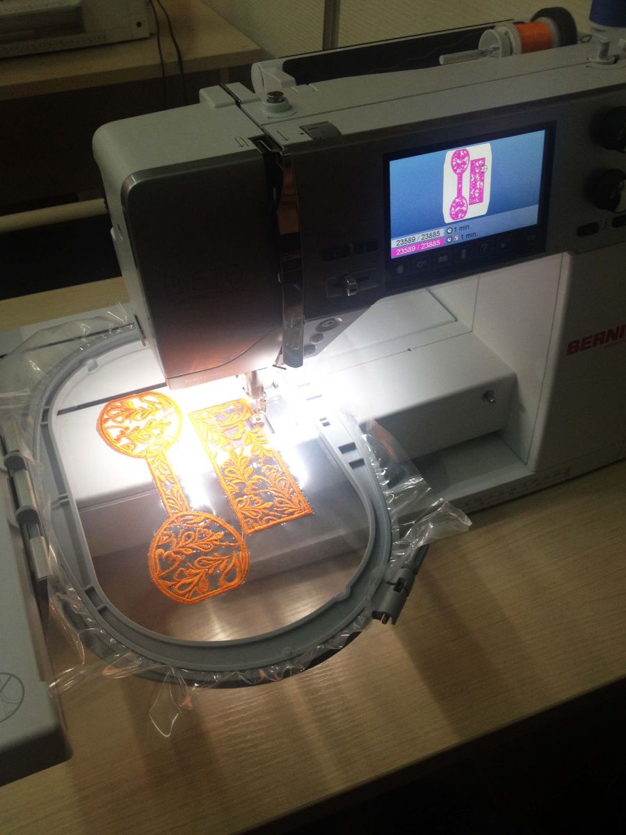 Изучали новую технику машинной вышивки - вышивка «ришелье», применяемая в изготовлении сувенирной продукции с помощью водорастворимой пленки Solvy.
