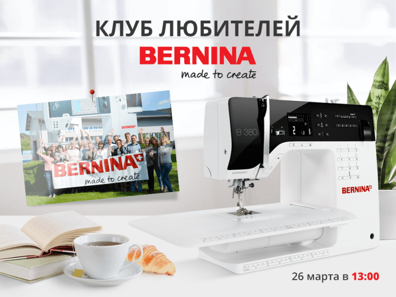 Приглашаем на встречу любителей швейной марки BERNINA – техники, с помощью которой можно творить чудеса. Подобные встречи помогут узнать о самой компании BERNINA, овладеть всей информацией по технике, которую вы приобрели, найти все, чтобы получать радость и удовольствие при работе на швейной и вышивальной технике.