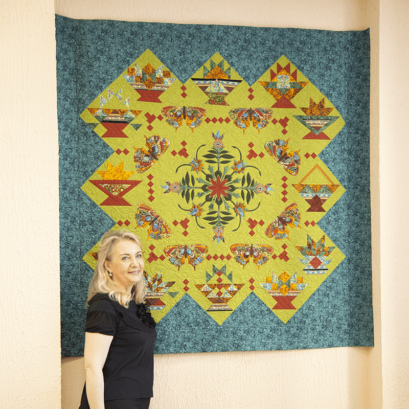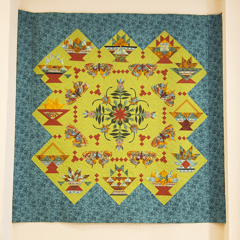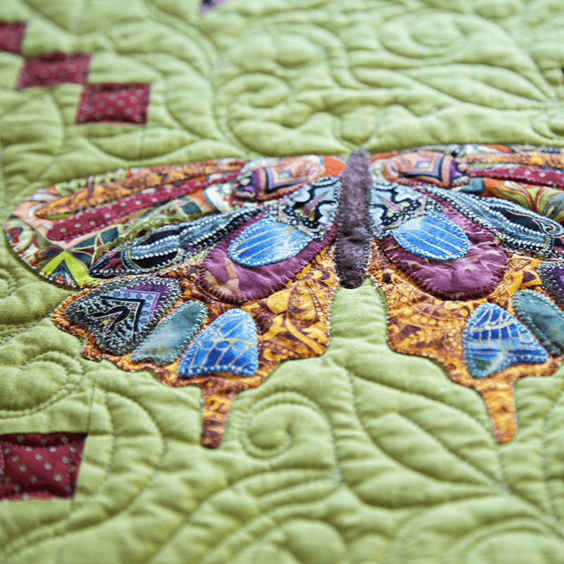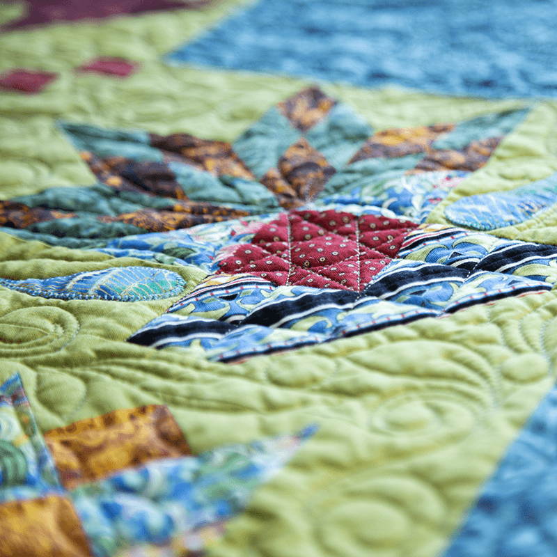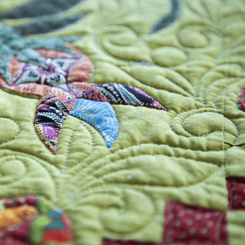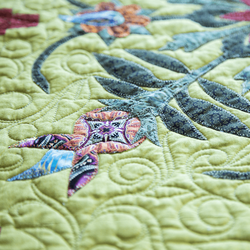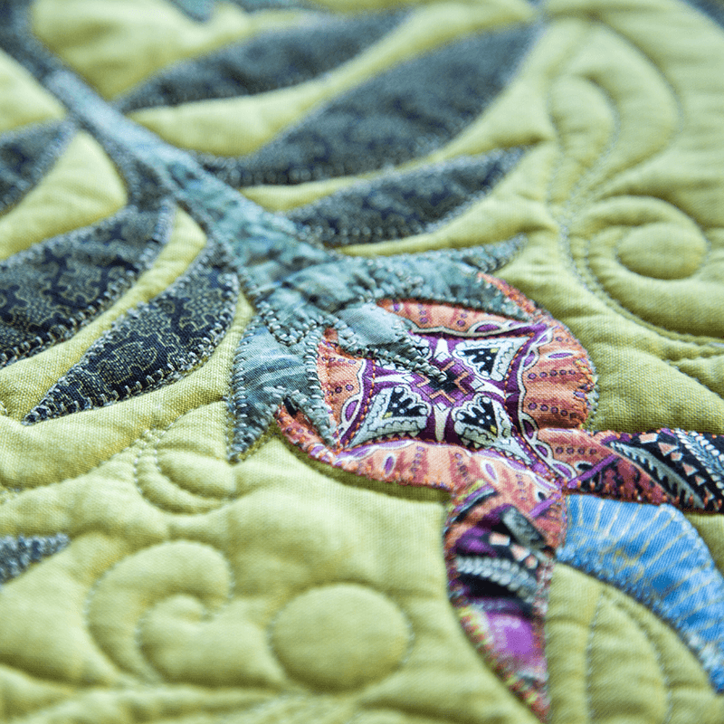 Интегрирование аппликации в композицию квилта. Блок, формирующий зонирование. Машинная аппликация.
