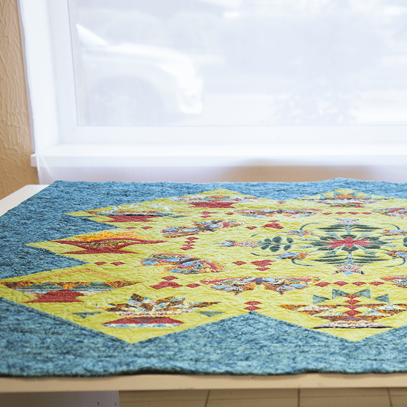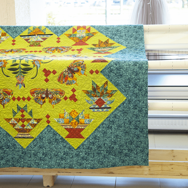 На этом курсе работаем с колористикой, вы получите опыт работы с цветом в текстиле. Уделяем значимое время работе с композицией по созданию лоскутного изделия.