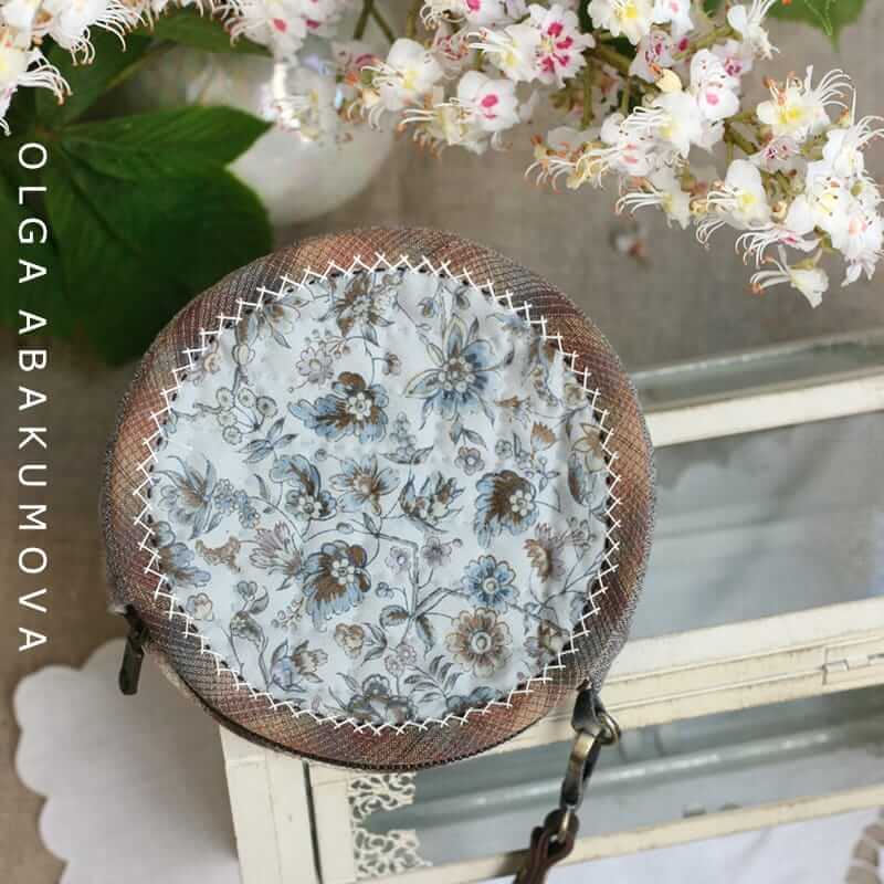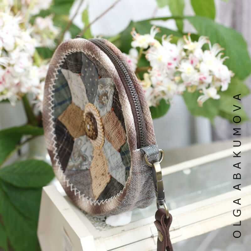 Раскрой деталей круглой косметички "Калейдоскоп событий". Сбор текстильного блока и оформление вышивкой. Ручная стежка деталей