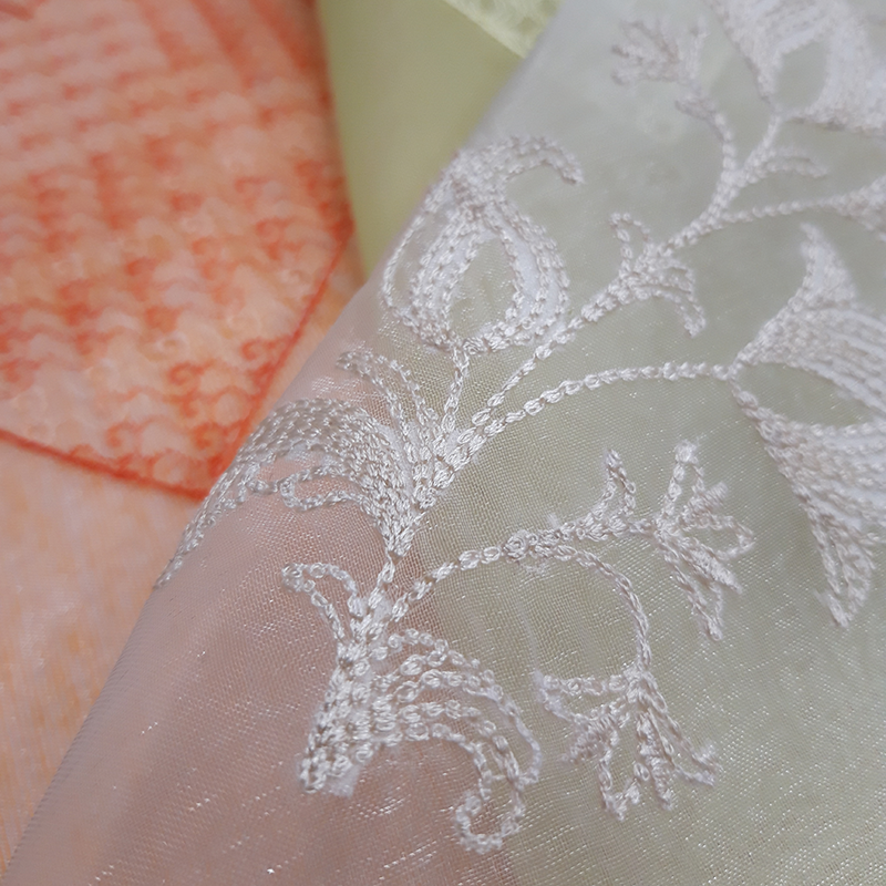 Вышивка на деликатных тканях (органза, сетка, шелк, фатин, батист).