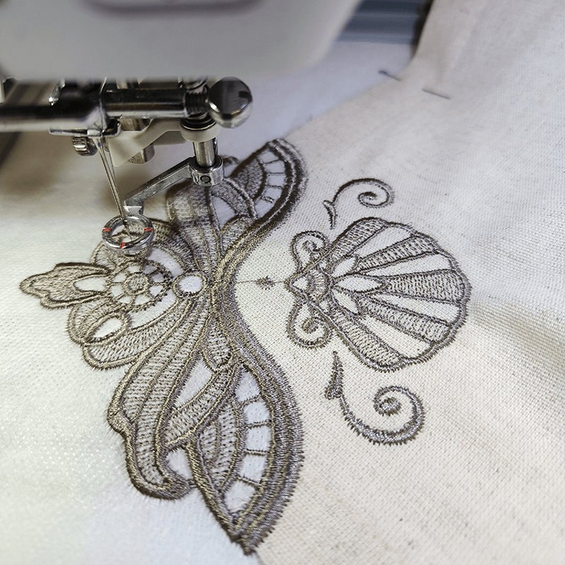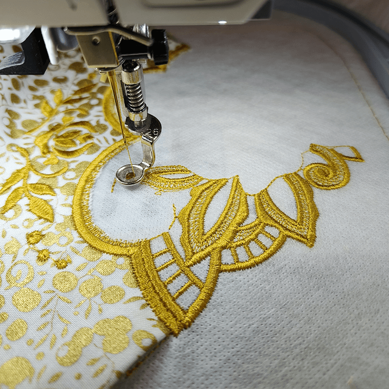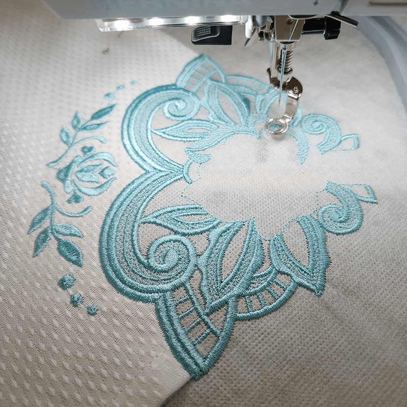 На курсе мы познакомимся с вышивальной машиной. Освоим техники: - выполнения кружевного уголка, - позиционирования элементов, - обработки края изделия